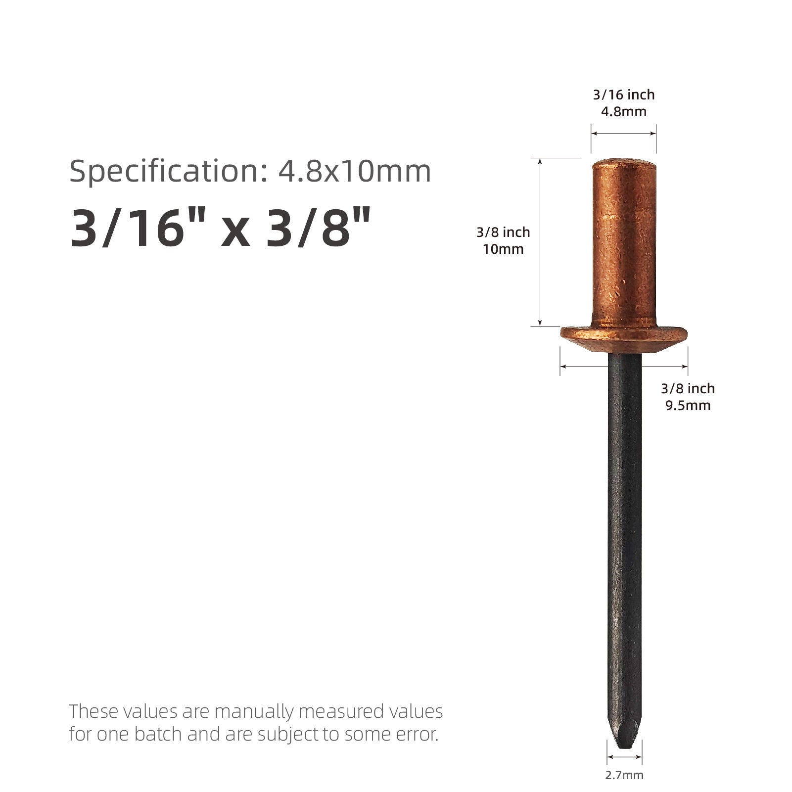 Material - These rivet made of copper grip, steel mandrel, which is strong, durable, corrosion-resistant, good stress, and suitable for long-term use.