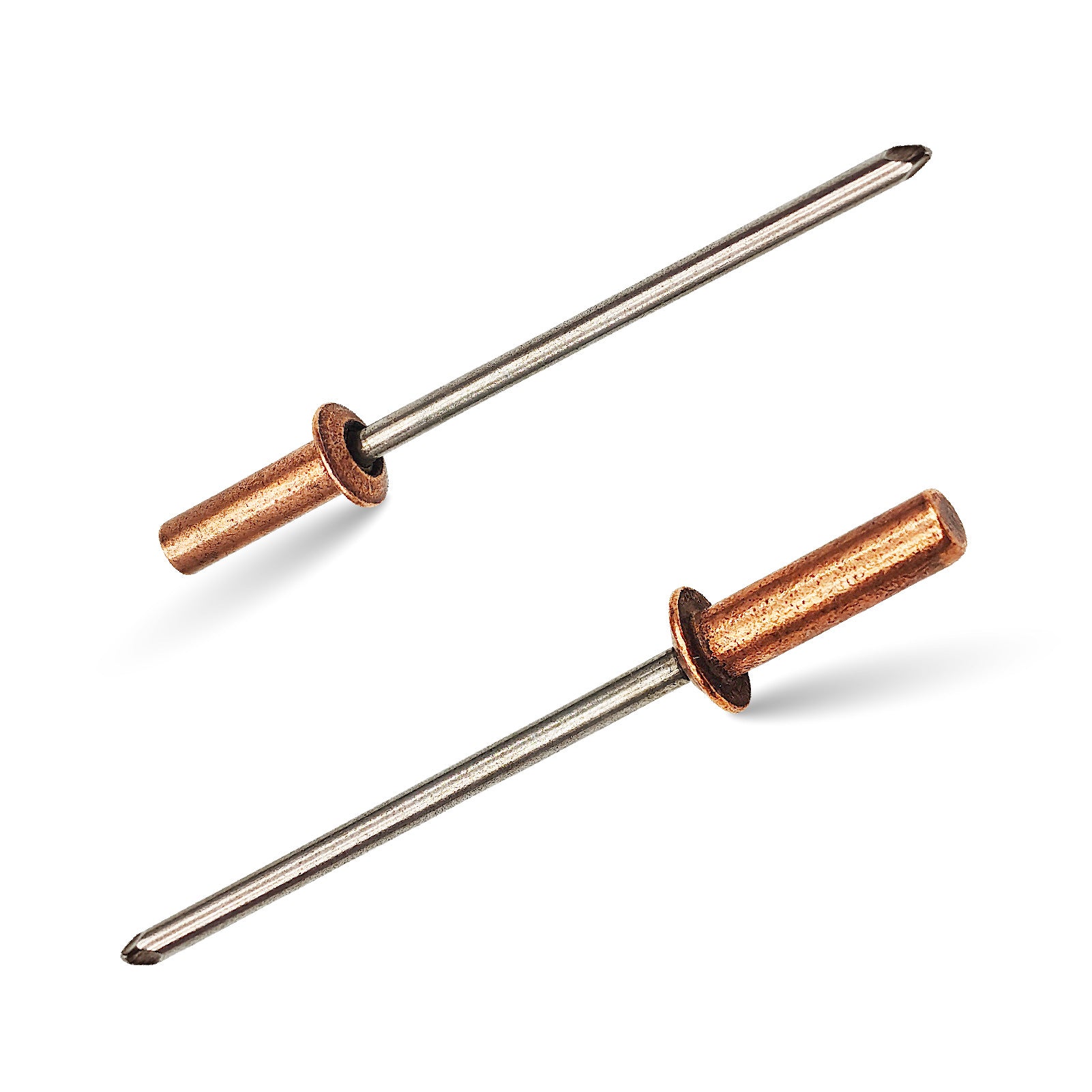 Easy to Use - Copper closed-end rivets are installed by first positioning the rivet through the aligned holes in the materials being joined. Next, using a rivet tool or a rivet gun, set the rivet by striking the mandrel, which causes it to expand and form a secure fit on the opposite side.
