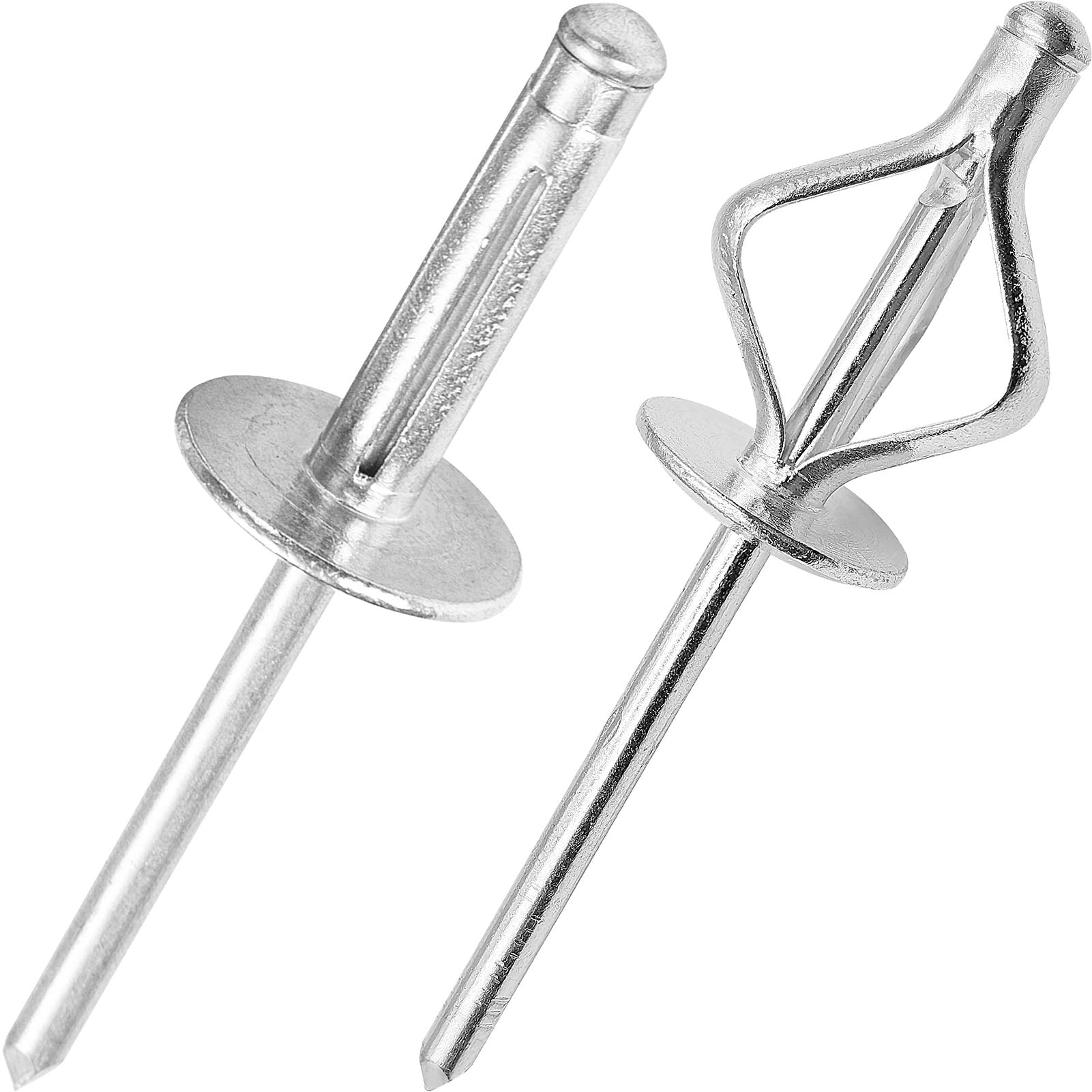 Tri-Fold Large Head Aluminum Blind Rivets, Large Flange Exploding Assortment Bulb Style Pop Rivets for Automotive, Soft or Plastic Materials
